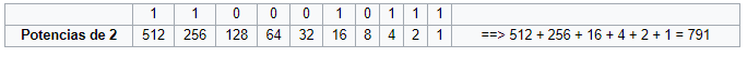- Se suman las potencias de 2 escritas bajo las cifras 1.